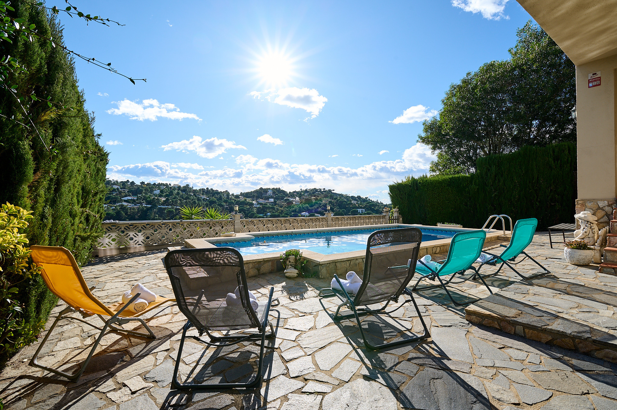 Die Villa in Lloret de Mar verfügt über 4 Schlafzimmer und hat eine Kapazität für 8 Person(en). Unterkunft verfügt über 130 m² und verfügt über eine tolle Aussicht auf die Berge. Die Unterkunft befindet sich 2 km vom Supermarkt "Distancia Supermercado" entfernt, 3 km vom Golfplatz "Distancia Golf", 7 km vom "Distancia Restaurante", 9 km vom zum Sandstrand "Distancia Playa", 9 km von der Stadt "Distancia Ciudad", in einer idealen Umgebung für Familien.Die Unterkunft verfügt über einen Garten, ein umzäuntes Grundstück, eine Terrasse, eine Waschmaschine, einen Grillplatz, einen Kamin, ein Bügeleisen/-brett, ein Internetanschluss (WLAN), eine Klimaanlage nur im Wohnzimmer, ein Privatpool, einen Parkplatz im Freien auf dem Grundstück, ein Fernsehgerät.Die Separate Küche mit gemixt: gas und elektrisch ist ausgestattet in einen Kühlschrank, eine Mikrowelle, ein Backofen, Gefrierschrank, Geschirr/Besteck, eine Kaffeemaschine und einen Toaster.
