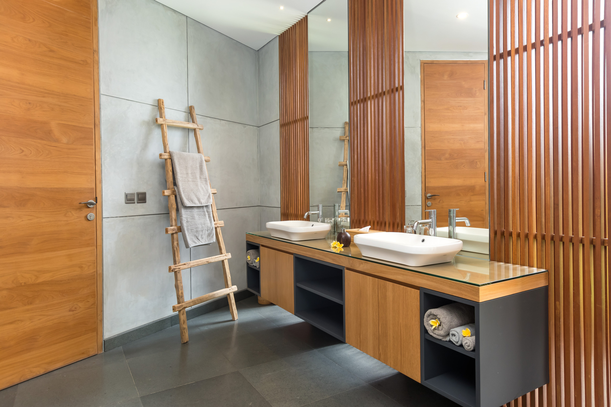 The ensuite bathrooms are luxuriously tropical, with Western amenities including a large bathtub and wooden decor. Return to your own piece of paradise after a long day with your loved ones.