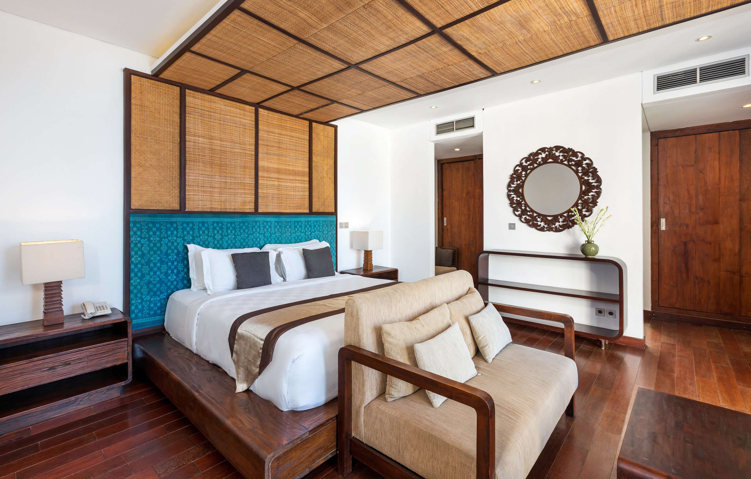 Conçues dans un souci de confort, chaque chambre des villas 2BR de The Chand's dispose de la climatisation, de télévisions à écran plat avec chaînes internationales et de lits king-size confortables. Les chambres offrent une vue imprenable sur l'océan ou le jardin luxuriant, garantissant un cadre tranquille pour une nuit de sommeil réparatrice. Les intérieurs sont ornés de parquet traditionnel en bois et de tapisseries murales en osier, tandis que les salles de bains privatives disposent d'équipements modernes, dont des baignoires jacuzzi et/ou des douches. Un espace de rangement généreux et des installations essentielles sont fournis pour plus de commodité.