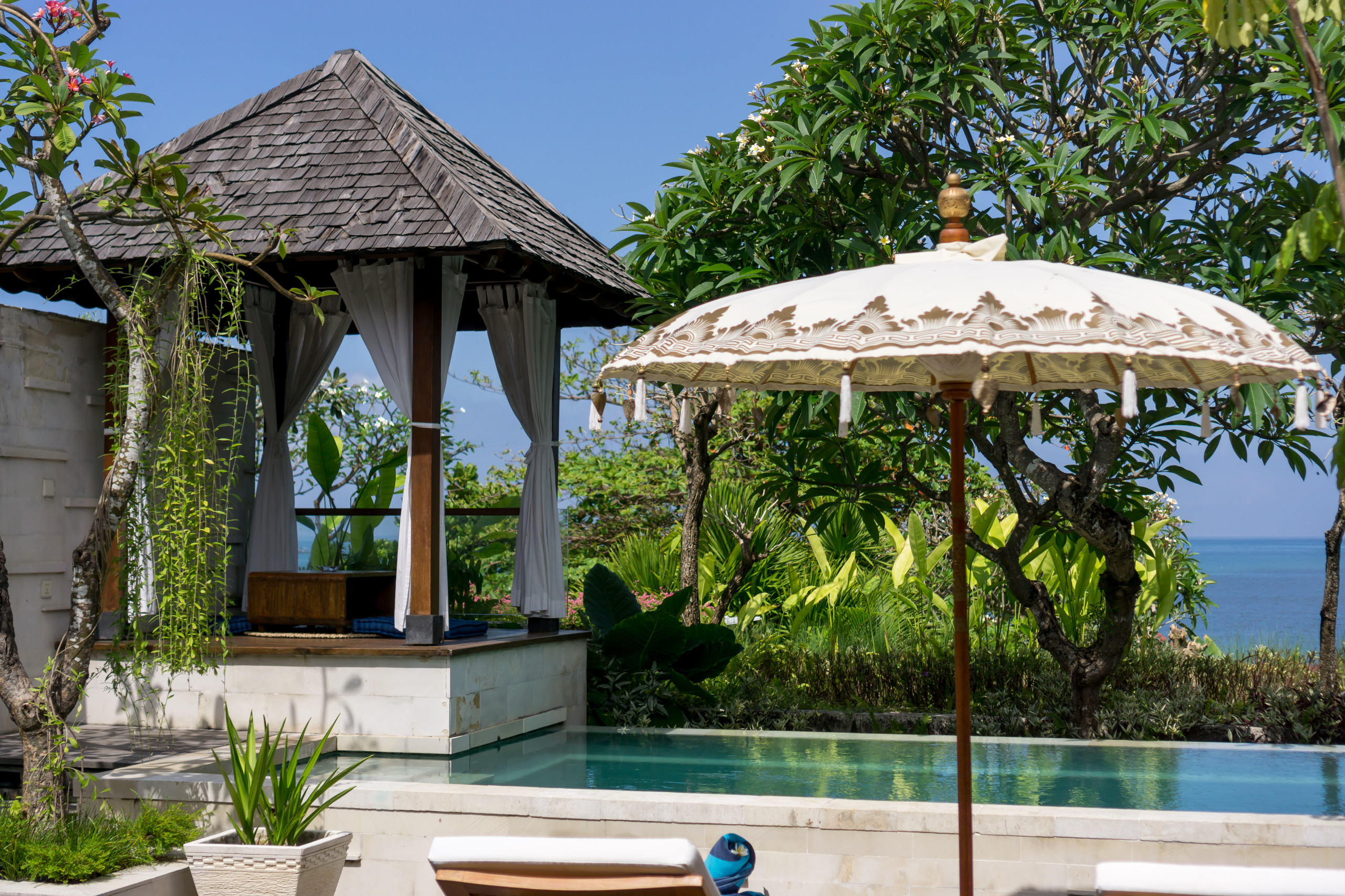 Les espaces extérieurs des deux villas sont vraiment enchanteurs, avec des piscines à débordement offrant une vue imprenable sur l'océan. Les clients peuvent se détendre sur le pont de la piscine en bois, siroter de l'eau de coco rafraîchissante ou des cocktails, entourés d'une végétation tropicale luxuriante et de la plage pittoresque. Un gazebo traditionnel balinais près de la piscine offre un endroit parfait pour profiter de vues panoramiques. Que ce soit en plein air ou à l'intérieur, les clients peuvent déguster leurs repas avec des vues magnifiques tout autour.